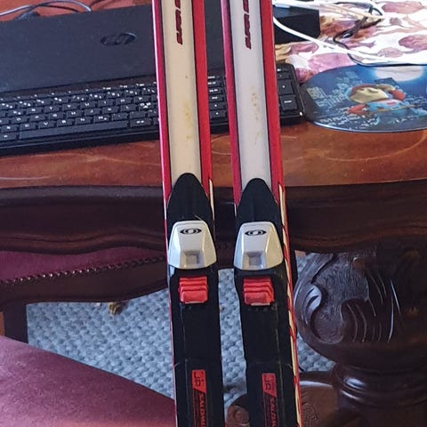 NNN-siteellä varustetut sukset lapselle. Pituus n.128 cm. Luten huomaa, niin pohjissa on viime vuodesta vielä roskia. Kokeilin, niin lähtevät kyllä irti, kun rapsuttelee. Sukset on voideltu, niin ovat jääneet roskat kiinni. Tästä halpa hinta. Hyvin näillä vielä hiihtelee.