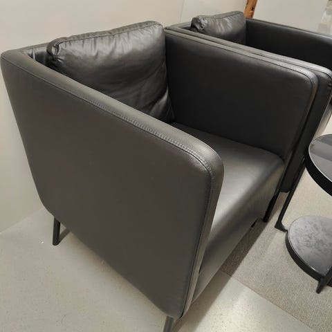 IKEA nahka, nojatuoli ja rahi