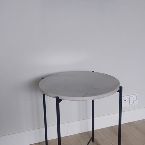 Tyylikäs pieni marmorinen sivupöytä. Korkeus 54 cm ja halkaisija 25 cm.