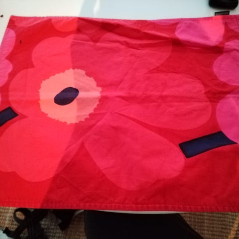Myynnissä 4 Marimekon Unikko juuttitablettia. Olleet vähän aikaa käytössä ja säilytetty sen jälkeen kaapissa.