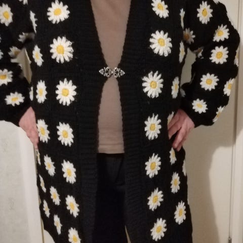 Käyttämätön virkattu isoäidinneliö takki. Koko noin xl-xxl.