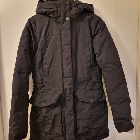 Myydään musta lämmin naisten talvitakki. Hupussa irrotettava karvareunus. Vyötäröllä kiristysmahdollisuus. Siisti ja vähän käytetty.
