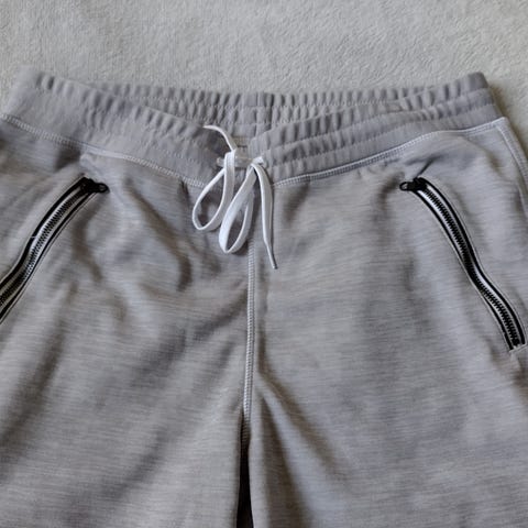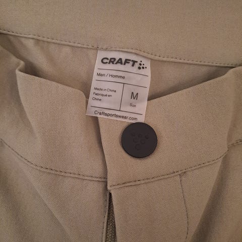Craft harmaat miesten housut, koko M. Takana kaksi kulumaa vyötäröllä, jotka ovat tulleet housujen lenkistä sisäpuolelta.