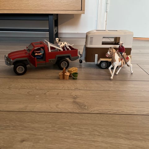 Schleich traileri setti, veto koukku on rikki, mutta muuten hyvässä kunnossa.