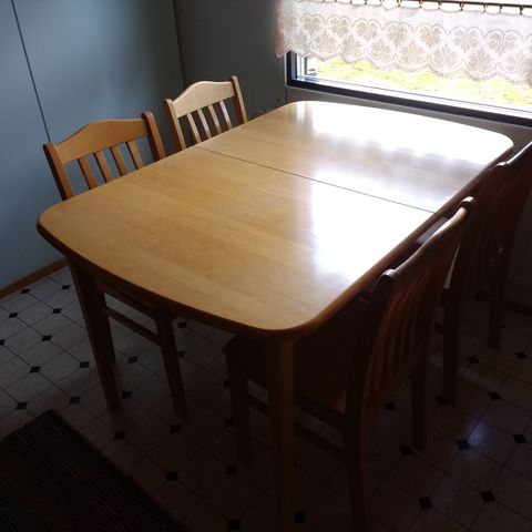 Myydään ensisijaisesti yhdessä 120€, mutta mahdollisuus myydä myös pöytä 80€ ja tuolit 10€/kpl.
