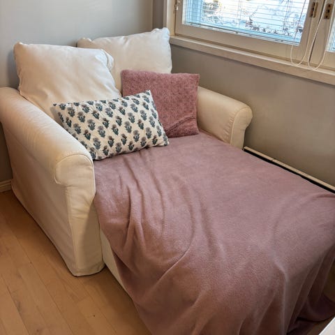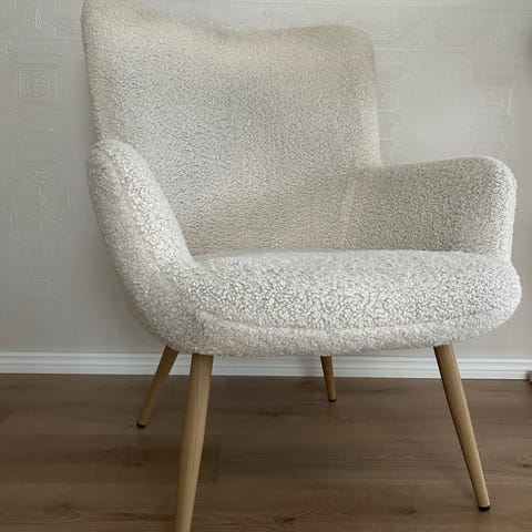Erinomaisessaa kunnossa, mukava, tukeva, vierashuoneessa "koristeena" ollut lepotuoli/divaani, beige teddy, mustilla jaloilla. Ei eläimiä taloudessa. Nouto Tikkurila, Lummetie.