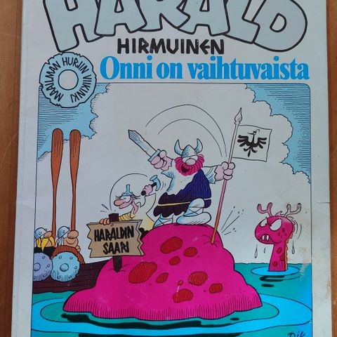 Harald Hirmuinen sarjakuva. Painettu 1989. Sivuja 98. Jotain pientä käytön jälkeä näkyvissä, lähinnä kansissa.