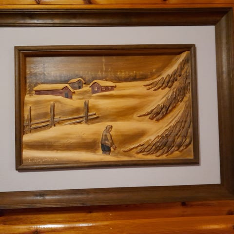 Myydään kuvien mukainen kehystetty puupiirros.