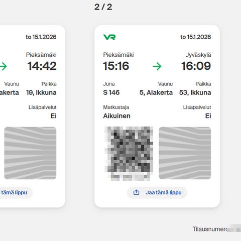 Myyn opiskelijan junalipun tälle päivälle (lauantai) Mikkeli–Lahti välille klo 18:51–20:44 (IC 70).