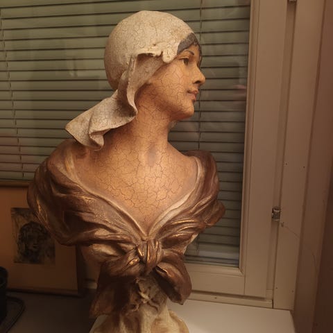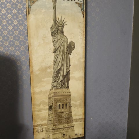 Sureva vapauden patsas jonka maalasi Terttu Saraperä. Öljyillä kankaalle. Signeerattu.