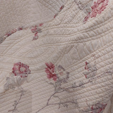 IKEA valkoinen päiväpeite, jossa kohokuvioitu ruutukuviointi. Päiväpeite on 100% puuvillaa.