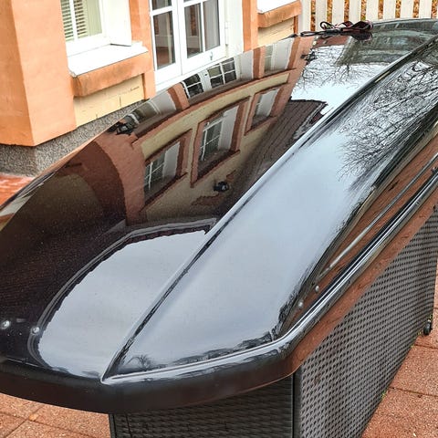 Musta Thule Pacific 700 Suksiboxi. Hyväkuntoinen, Kuvissa pölyinen.