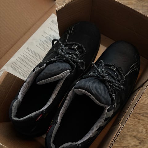 Täysin käyttämättömät vimosen päälle ammattitason turvakengät. Kevyt komposiittivarvassuoja, naulaan astumissuoja, hieman leveämpi lesti kuin esim. Jalaksen kengissä.