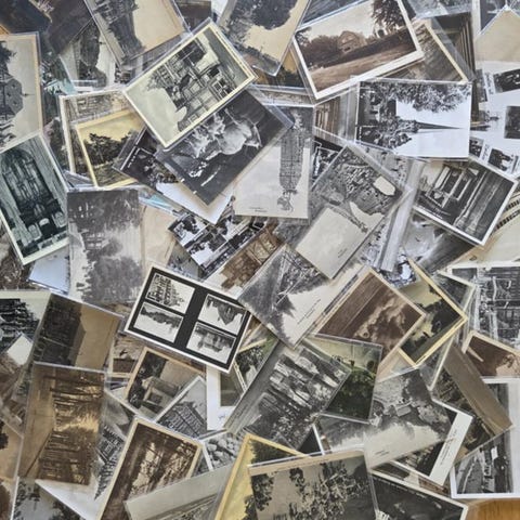 Tuntemattomia paikkoja. Kokoelma 200 postikorttia tuntemattomasta alkuperästä. Jännittävä erä. Postitse käytettyjä ja käyttämättömiä. Suurin osa ajanjaksolta 1900–1945. Iänmukainen kunto, joitakin jälkiä.