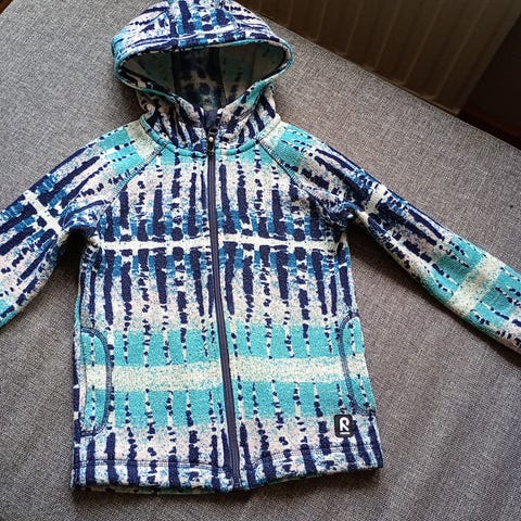 Myydään ohut Reiman fleece-takki. Alkuperäinen ripustuslenkki lähtenyt irti ja tilalle ommeltu puuvillanauhalenkki.
