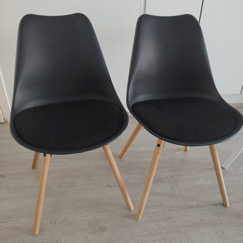 2 kpl siistiä mustaa tuolia. 10 € kpl.