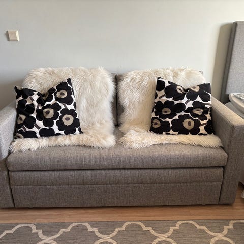 Vaaleanharmaa vuodesohva