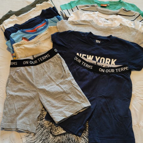 Siistit, osa todella vähän käytetty. Hieman ryppyiset vakuumisäilytyksen jäljiltä. Paketissa fleecetakki, neljä ohuempaa pitkähihaista paitaa ja seitsemän t-paitaa. Ei lemmikkejä taloudessa. Mmm.