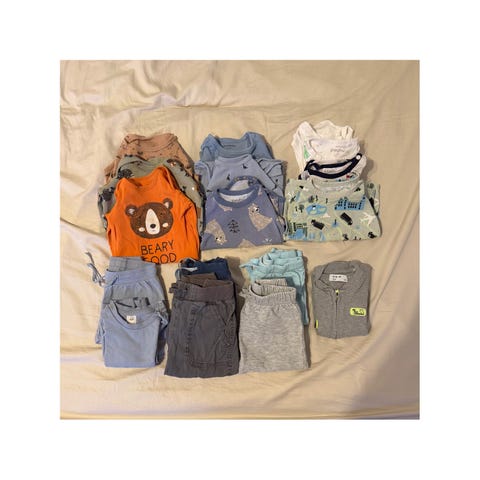 Ok kuntoisia vaatteita koossa 86. Housuja 9 kpl, 1 paita, 1 tunika, 1 takki, 1 sukkahousut ja 2 college paitaa (toinen 74 koko).