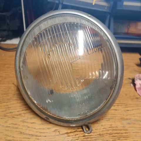 Hella nro 1-92587. Ehjä. Pientä rupea joka näkyy kuvissa. Pikku hankaus poistaa sen. En tiedä kummalle puolelle. Vm luulen -67-71. Ja käy muuten Porsche 356 myös. Nouto Klaukkala, maksu Mobpay tai käteinen.