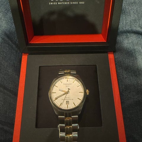Tissot - Chemin Des Tourelles Powermatic 80 - T0994071603700Kast: EdelstaalKello: Sveitsissä valmistettu automaattinen kaliberi Powermatic 80.111.Kellotaulu: hopeanvärinenHalkaisija: 42 mm (ilman kruunua)Lasi: SafiirilasiBand: originaali musta nahkainen ranneke*Ranteen koko: 21 cmKunto: Uusi!Takuu: 1 vuosi 'de Horlogemeesters'Ei takuita renkaasta.Toimitus: alkuperäisessä laatikossa + de Horlogemeestersin aitoustodistus.Rekisteröity ja vakuutettu lähetys (DHL-express).