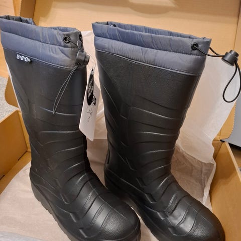 Erittäin kevyt pitkävartinen EVA-talvikumisaapas lämpimällä karvavuorilla. Saappaassa on tilava lesti. Sopii talvikäyttöön ja materiaali kestää kylmää -40 Celsius astetta. Kuvioitu ulkopohja EVA kumiseosta. Kuivaus ja säilytys max 40 asteessa.