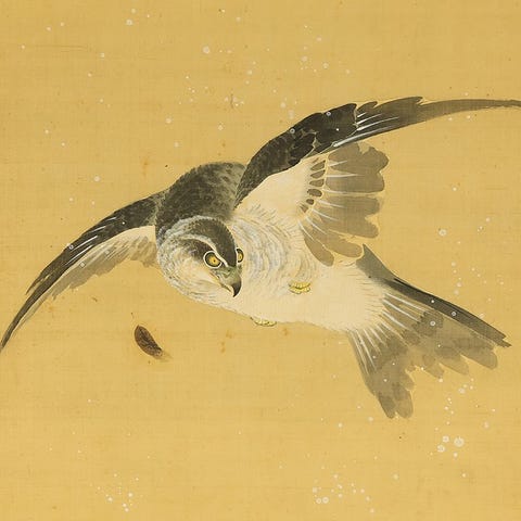 Tämä riippuva rullataideteos nimeltä Hagoromo (羽衣) kuuluu Nishijin Handwoven Karawata (西陣手織唐綿能姿シリーズ) -sarjaan Nohgaku Series, ja esittelee rikkaasti koristellun naisen punaisessa kimonossa, viitaten klassisen Noh-näytelmän Hagoromo’n taivaalliseen neitoon. Hänen vehreän laajat pukunsa, monimutkaiset kuviot ja ryhdikäs ele taitetulla kalligrafiakielellä heijastavat Noh-teatterin eleganssia ja symboliikkaa, jossa asu ja liike välittävät runollisia merkityksiä kerroksittain. Tekstiilitaiteen juuri on Nishijin ori (西陣織)—Kioton tunnetun esivärjätyn silkkin kudontaperinteen tuotosta, johon kuuluvat tekniikat kuten tsuzure, kinran brocade, shuchin ja tsumugi. Nämä ylelliset kankaat korostavat riippuvan teoksen visuaalista vaikutelmaa, yhdistäen taiteen ja tekstiiliperinnön. Alkuperäisen laatikon (tomobako) kanssa, ripustettava teos ilmentää esityksellisen keveyden ja koristeellisen hienostuneisuuden Fuusiota, tehden siitä kiehtovan osan japanilaisesta kulttuuri- ja taideilmaisusta.西陣織 Nishijin ori (Nishijin-kudonta)Kioton esivärjättyjen kudottujen kankaiden yhteisnimitys. Korkealaatuiset silkki-tekstiilit, jotka on valmistettu esivärjätyillä, värikkäillä langoilla, kuten tsuzure, brokadi (kinran), satiini, shuchin, kasuri ja tsumugi.Nishijin Weavings 西陣織 Nohgaku 能楽 Nainen punaisen kimonon, höyheninen kaapu / japanilaisen taiteen kakejiku kakemono -seinäriipus, alkuperäisellä laatikolla (Tomobako)Koko mitat: 19.3" leveys x 64.6" korkeus / 49.2 cm x 164.2 cmSisämitat: 13" leveys x 31.9" korkeus / 33,2 cm x 81,1 cmMateriaali: SilkkiKäsin punottuRullan päät: PuuPaino: 1150 g sisältäen alkuperäisen laatikon (Tomobako)EhtoAntiikkiesineillä on alun perin rypytystä, tahroja, vaurioita ja muuta. Viittaan myynti-ilmoituksen kuviin, mutta ymmärrä, että kaikkia kunto-olosuhteita ei ole helppo osoittaa kuvien perusteella. Erityishuomautukset: hieman rypistynyt, taivutettu, sekä tahra kiinnityksen takana.ToimitusILMAISET TOIMITUKSET kaikkialle maailmaan rekisteröidyllä kirjeellä, EMS:llä tai DHL:llä.