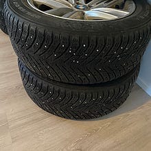 Vanteet lähempää katottuna parhaat päivänsä nähny. Renkaat hyvät, kaikki nastat yhtä katkennutta lukuunottamatta tallella. Myydään tasapainotettuna.