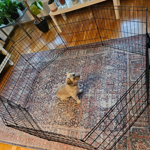 Koirille tai muille lemmikeille aitaus / koiratarha, joka on valmistettu kestävästä kankaasta ja verkosta. Tarhassa on vetoketjullinen kansi ja se on varustettu tukevilla kiinnitystangoilla 4kpl. Sopii pienille ja keskikokoisille koirille tai muille lemmikeille ulkoiluun ja turvalliseen oleskeluun.