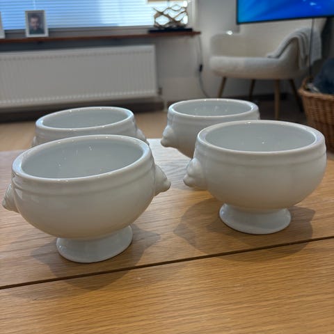 Kulhon yläreuna on aaltoileva. Korkeus 6 cm, yläreunan halkaisija 21 cm.