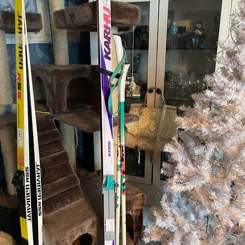 Hyvä suksipaketti 140cm, sauvat 115cm ja monot koko 34.