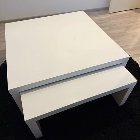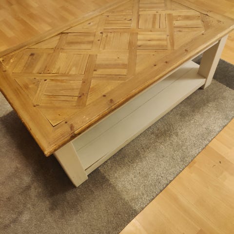 Ikean sohvapöytä, vaalea puun väri. Alaosa hieman painunut.