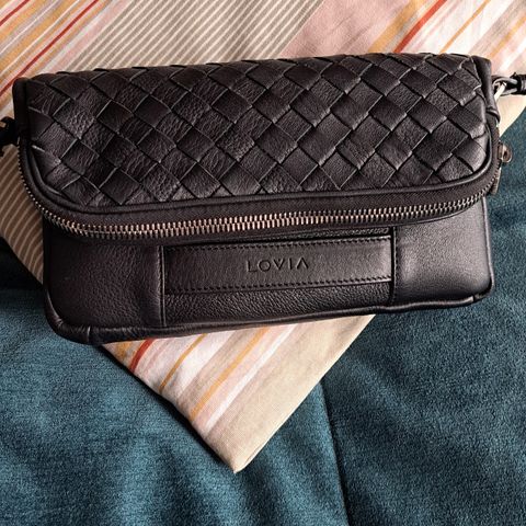 Upea, tummanruskea Suomessa valmistettu Lovia Kainut laukku. Nahkaa. Vähän isompi kuin A4 arkki.