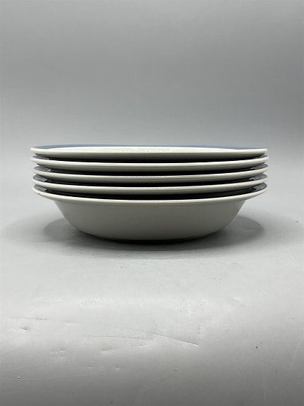 Yksi lautasista on vaurioitunut reunasta, mutta muut ovat hyvässä kunnossa ilman merkittäviä naarmuja tai halkeamia.