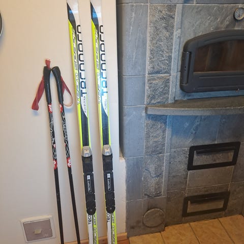 Sukset: Pituus 183 cm. Voideltavat pohjat. Pohjissa nyt pitoteippi