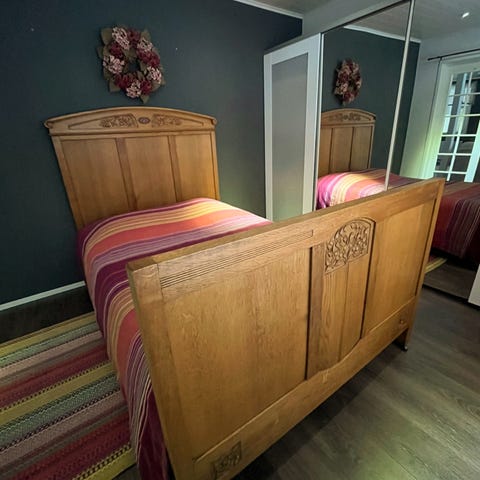 Antiikki sänky ja uusi joustinpatja ja memoryfoam petauspatja