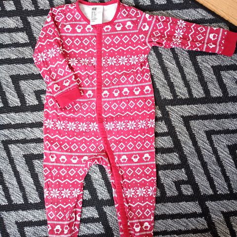 Punainen ruudullinen pyjama jossa napit alas asti. Edessä tasku.