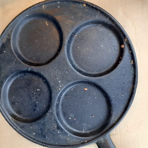 21 cm halkaisijaltaan oleva valurautapannu. Varressa oleva iso H on joko Högforssin tai Husqvarnan tuotemerkki. Ennen käyttöä kannattaa polttaa rasvaa pannussa. Savuton ja kotieläimetön talous.