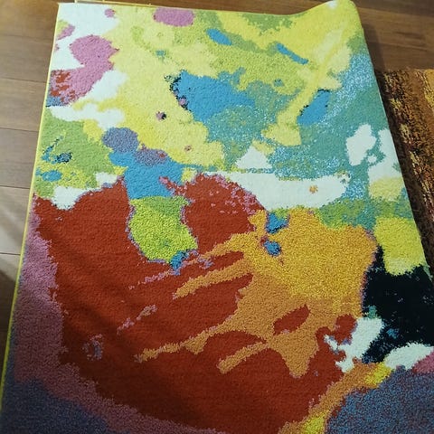 Annetaan pörröinen, ehjä, mutta pölyinen matto. Pesu jää ostajalle. Sävy on violetimpi kuin kuvassa. Koko 140x190 cm.