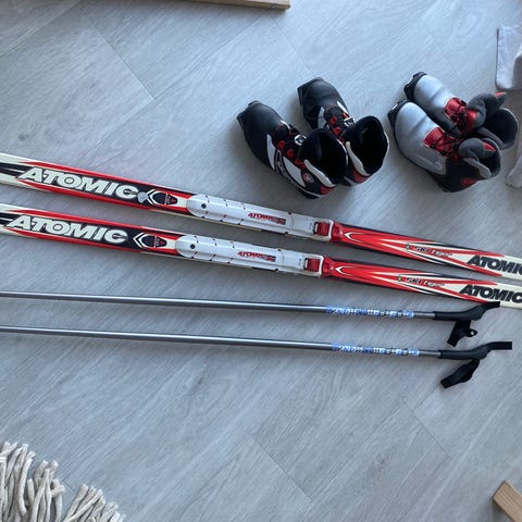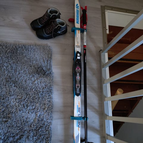 Yhdellä lapsella käytössä ollut hyväkuntoinen hiihtosetti.