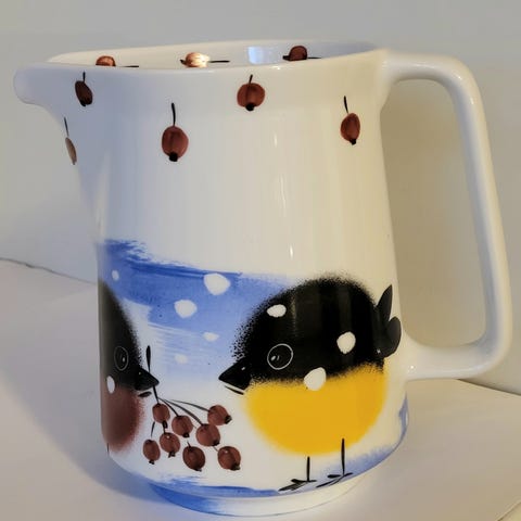Virheetön, ihana Helina Tilk 'Lehmä' kannu. Vetoisuus 4 dl, pituus 18 cm, korkeus 7,5 cm. Handpainted.