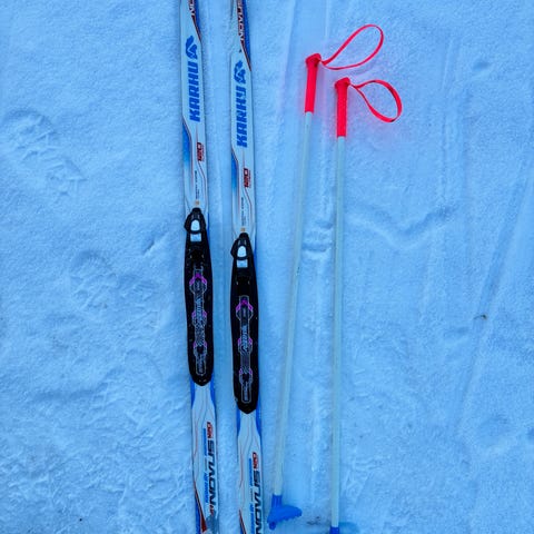 Sukset Rottefella NNN siteillä ja 95 cm sauvat mukaan.