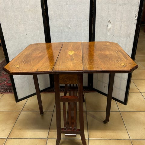 Myydään antiikkiliikkeestä Tammisaaresta ostettu vanha klaffipöytä. Iästä ei tietoa, mutta tukevassa ja hyvässä kunnossa. Ei vaadi kunnostusta. Pinnoissa ajan patinaa. Ostettu vuosi sitten, muttei mitoiltaan oikein istu pieneen keittiöön. Siksi vaihtoon. Pöytälevy käsitelty mehiläisvahalla ostaessa. Mitat pöytä avattuna: P: 131cm, L: 95,5cm ja K: 77cm. Pöydän pituus taitettuna n.42 cm. Pöydän pituus kun toinen klaffi taitettuna n. 86 cm. Pöytää voi tulla katsomaan Pukinmäkeen. Vain nouto. Hinnasta en tingi.