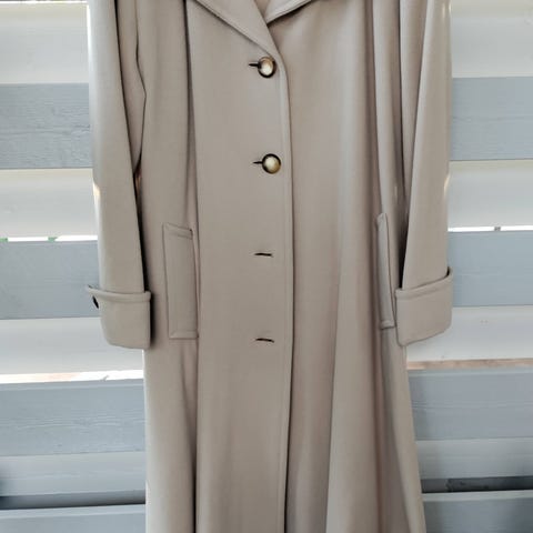 Koko L. 100% villa. Kai-kai 58, olka-helma 130. A-linja. Taskut. Kiinnitetty huivi. Sisällä erillinen villavuori. Tummanvihreä