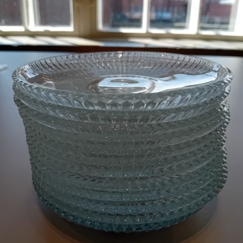 Ehjiä käytettyjä lasilautasia. Kuvanmukainen kasa.