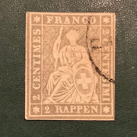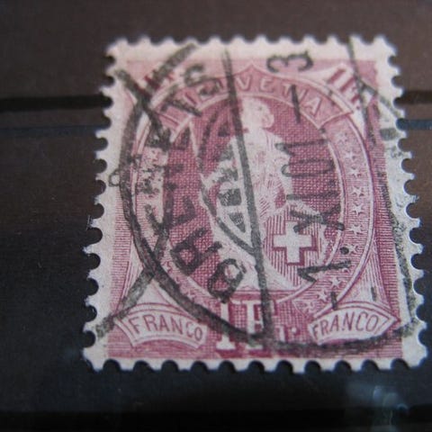 Sveitsi - 1 franki Strubel MiNr. 18II leimattu