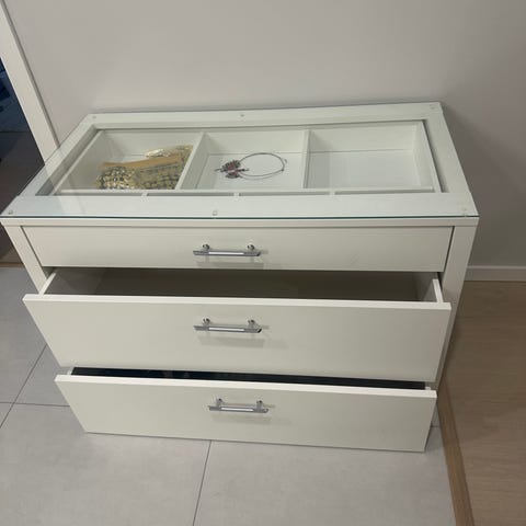 Hyväkuntoinen lipasto, Askosta hankittu, lasiovien paikkoja voi muuttaa.