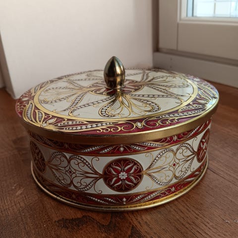 Ikääntyneet ja ehjät peltiset pastillirasiat. Koko setti 10€.