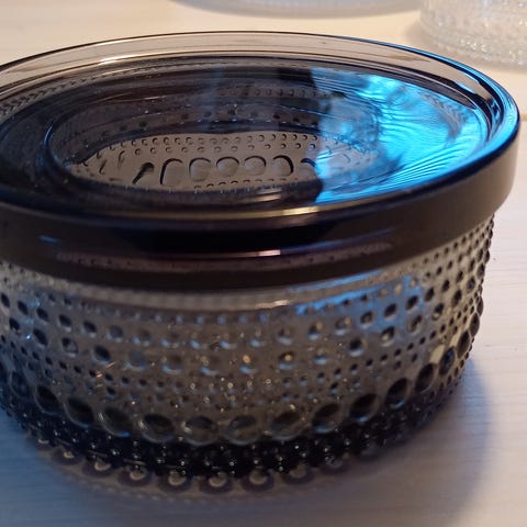 Iittala Kastehelmi lasiastia, jossa on kansi. Pienempi malli. Täysin ehjä. Vain nouto.