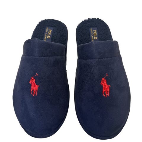 Uuden uutuuttaan Ralph Lauren -liikkeestä.Polo Ralph Laurenin mukavat tossut.Polo RL -symbolilla varustettu mitMalli : "Klarence" Väri : "navynsininen"pehmustettu pohja plüschistäja punaruudullinen vuorimit liukumaton kumipohjaKoko: EU 41Uusi ja käyttämätön, alkuperäisessä lahjapakkauksessa.Vakuutettu lähetys Itävallan Postin kanssa.